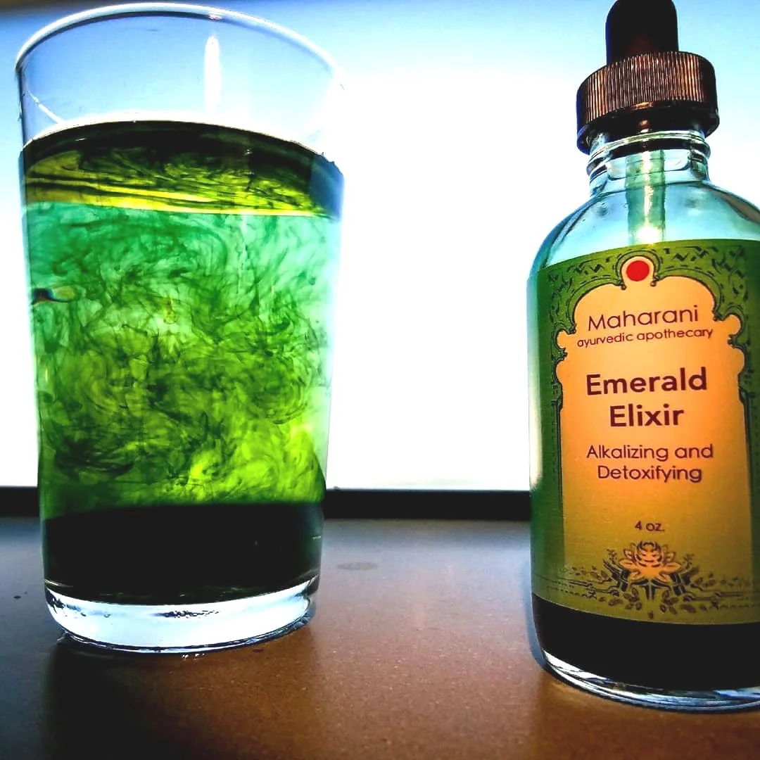 The Emerald Elixir is designed to be alkalizing and detoxifying. One dropperful in a glass of water is very refreshing, rich in essential minerals and loaded with organic chlorophyll, fennel, and mint. Great drink after meals or during detox.
